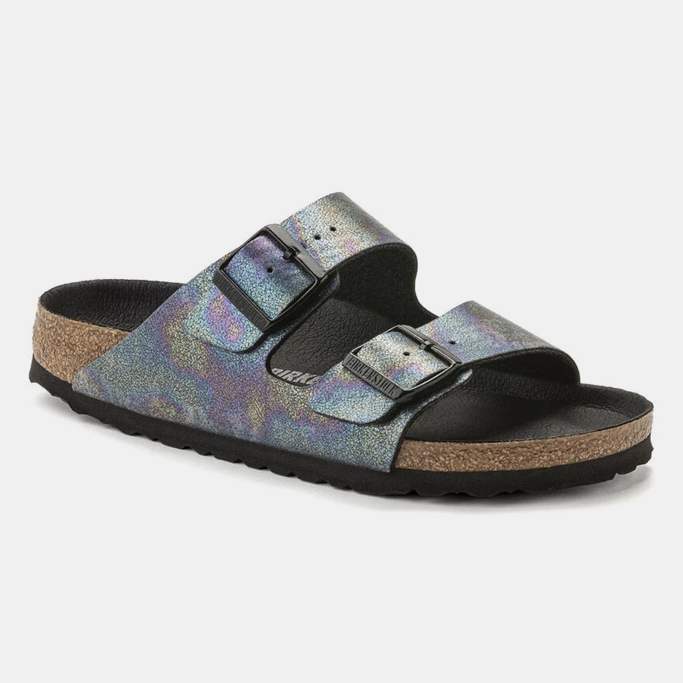 Τα Arizona σανδάλια της BIRKENSTOCK γοητεύουν με τον διαχρονικό σχεδιασμό τους εδώ και δεκαετίες. Αυτή η εκδοχή αποτελείται από ιριδίζουσα, μεταξένια λάμψη και λάμψεις σε όλα τα χρώματα του ουράνιου τόξου! Οι χρωματικές λεπτομέρειες ολοκληρώνουν την εκλεπτυσμένη εμφάνιση του παπουτσιού. Το άνω μέρος είναι κατασκευασμένο από φιλικές προς το δέρμα μικροΐνες ενώ η εφαρμογή είναι άνετη.