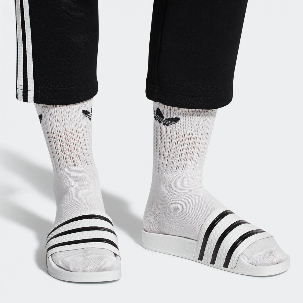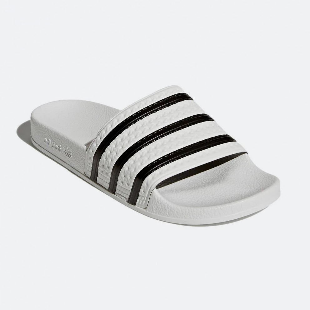 Οι Adilette ξεκίνησαν από τα αποδυτήρια του κολυμβητηρίου κι έγιναν συνώνυμο της άνεσης και του street style. Αυτή η έκδοση των κλασικών slides έχει επάνω μέρος με «λακκάκια» και τρεις έντονες ρίγες της adidas. Ο πάτος από PU προσαρμόζεται στο σχήμα του ποδιού σου και γίνεται όλο και πιο άνετος όσο τις φοράς.