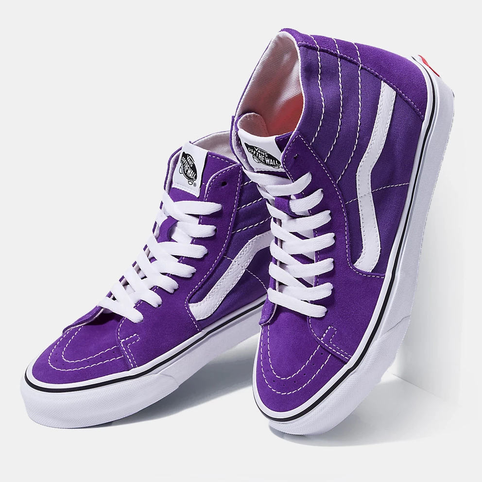 Tα Vans Sk8-Hi είναι εμπνευσμένα από τα κλασικά Vans Old Skool. Είναι κατασκευασμένα από suede υλικό στο πάνω μέρος, διαθέτουν επένδυση στον αστράγαλο για παραπάνω υποστήριξη και η εξωτερική τους σόλα είναι φτιαγμένη από καουτσούκ με σήμα κατατεθέν το στυλ waffle.